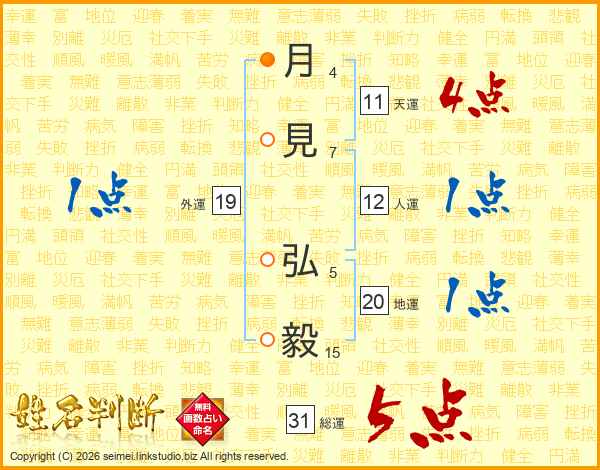 月見弘毅さんの総運は31画の5点!