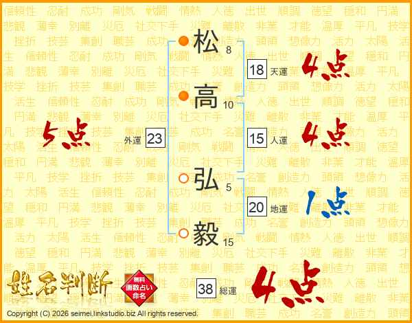 松高弘毅さんの総運は38画の4点!