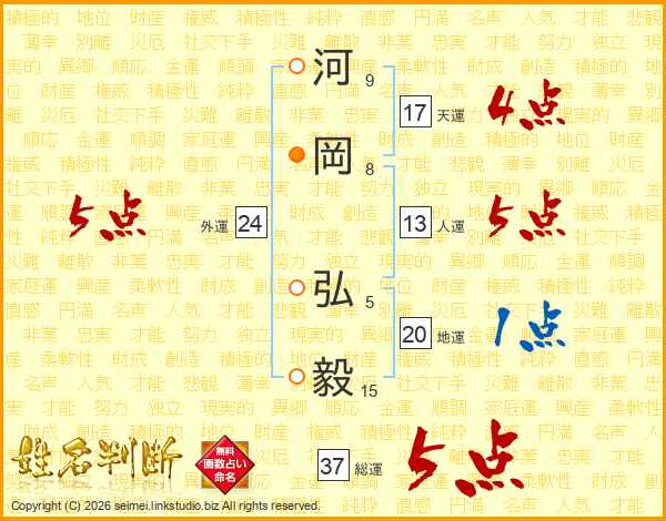 河岡弘毅さんの総運は37画の5点!