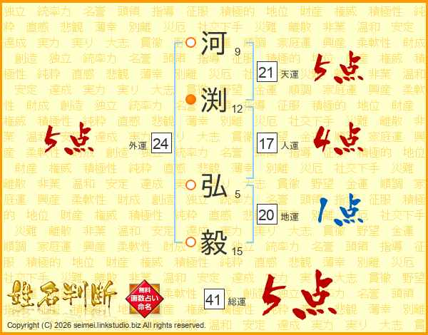 河渕弘毅さんの総運は41画の5点!