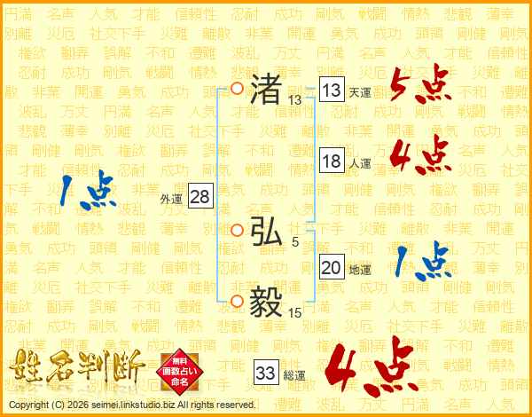 渚弘毅さんの総運は33画の4点!