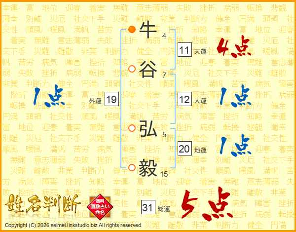 牛谷弘毅さんの総運は31画の5点!