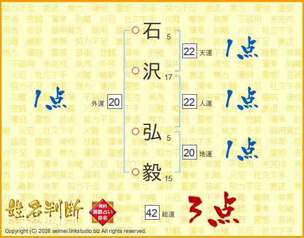 石(5画)沢(17画) 弘(5画)毅(15画)