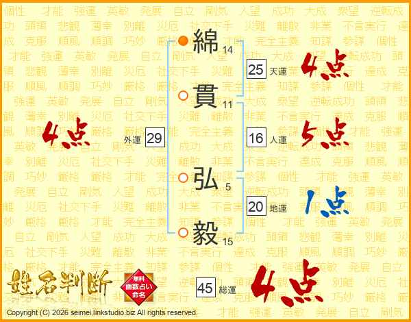 綿貫弘毅さんの総運は45画の4点!