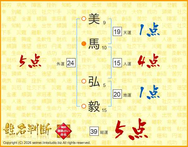 美馬弘毅さんの総運は39画の5点!