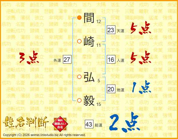 間崎弘毅さんの総運は43画の2点!