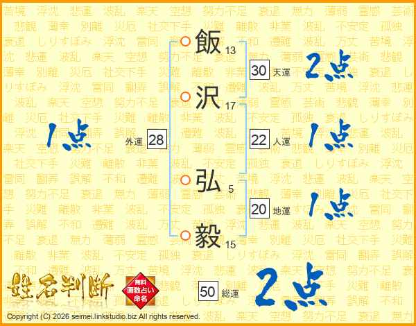 飯沢弘毅さんの天運は30画の2点!