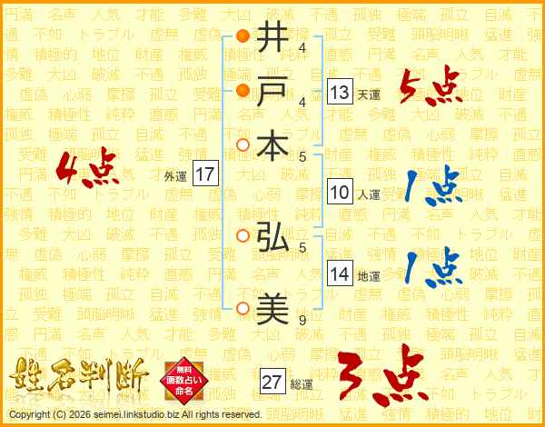 井(4画)戸(4画)本(5画) 弘(5画)美(9画)