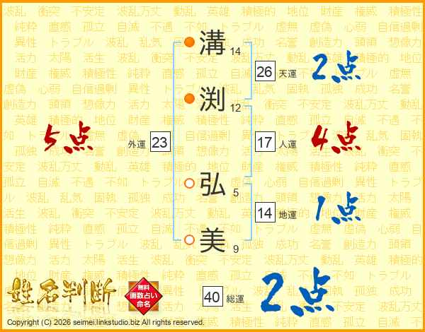 溝(14画)渕(12画) 弘(5画)美(9画)