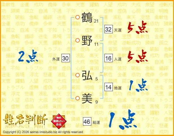鶴野弘美さんの総運は46画の1点!