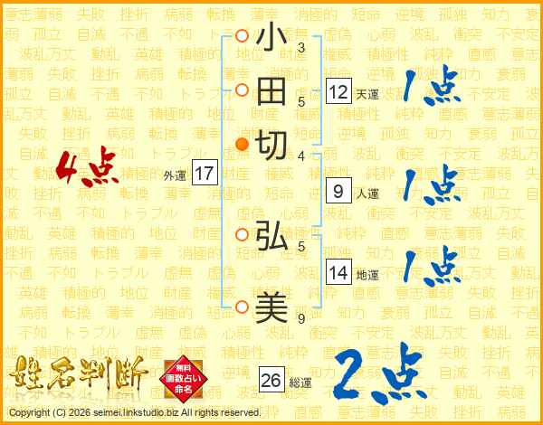 小(3画)田(5画)切(4画) 弘(5画)美(9画)