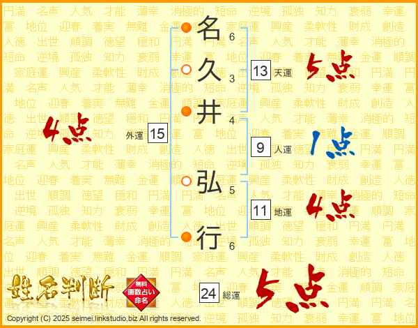 名(6画)久(3画)井(4画) 弘(5画)行(6画)