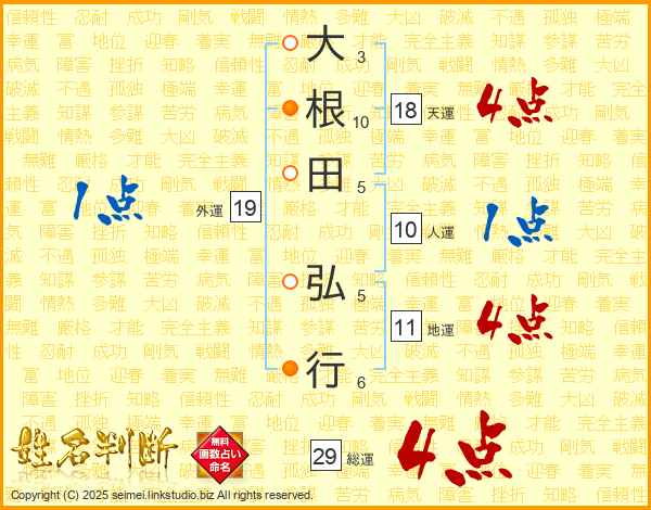 大(3画)根(10画)田(5画) 弘(5画)行(6画)