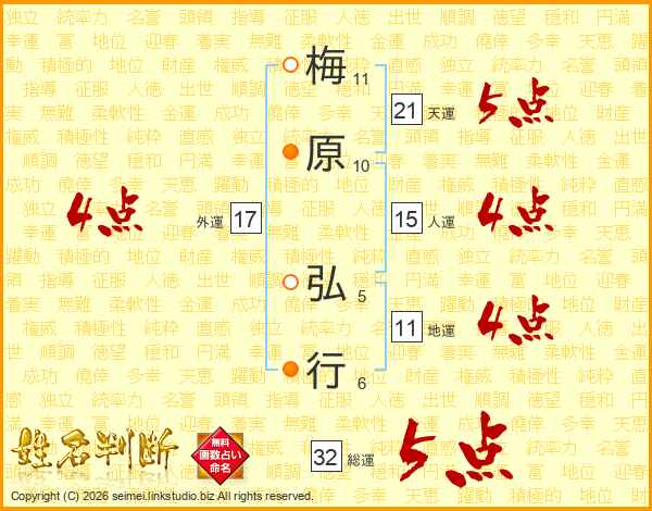 梅原弘行さんの総運は32画の5点!