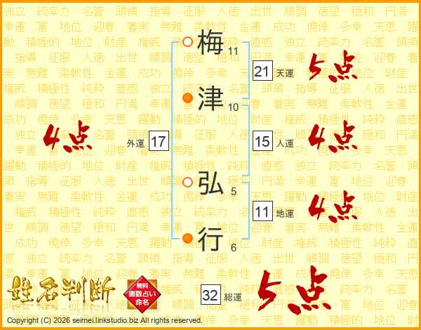 梅津弘行さんの地運は11画の4点!