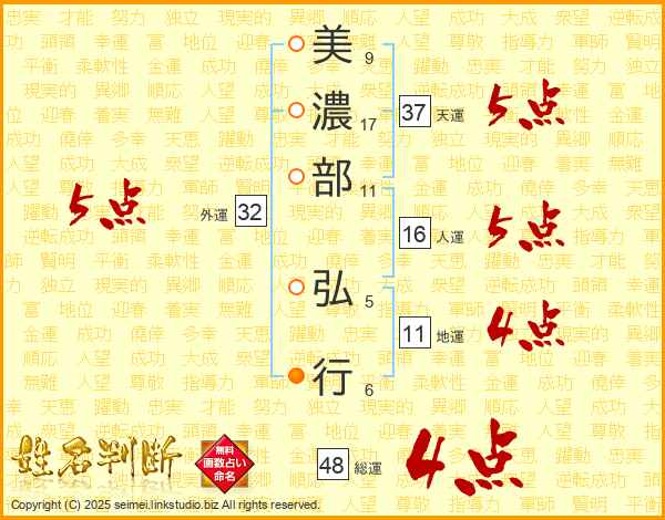 美濃部弘行さんの総運は48画の4点!