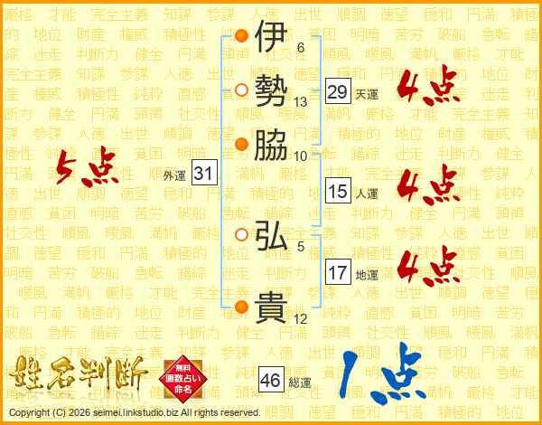 伊勢脇弘貴さんの総運は46画の1点!