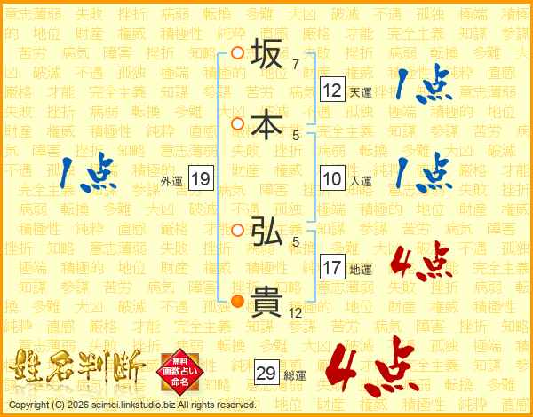 坂本弘貴さんの総運は29画の4点!