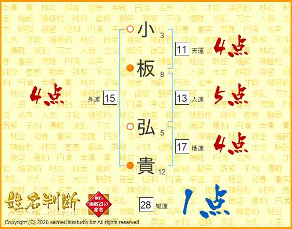 小板弘貴さんの天運は11画の4点!