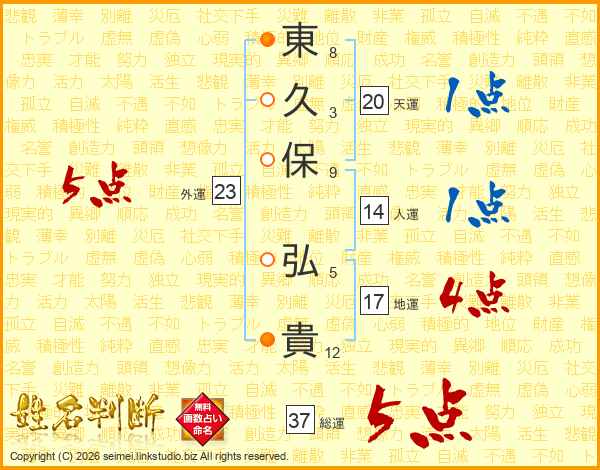 東(8画)久(3画)保(9画) 弘(5画)貴(12画)