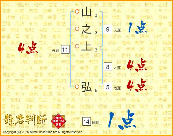 山之上弘さんの総運は14画の1点!