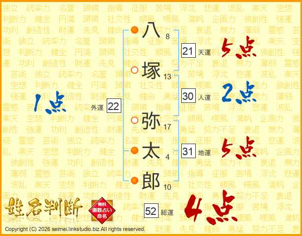 八塚弥太郎さんの総運は52画の4点!
