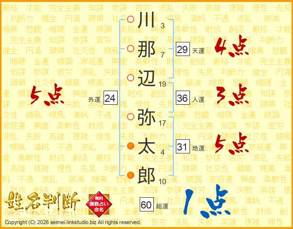川那辺弥太郎さんの外運は24画の5点!
