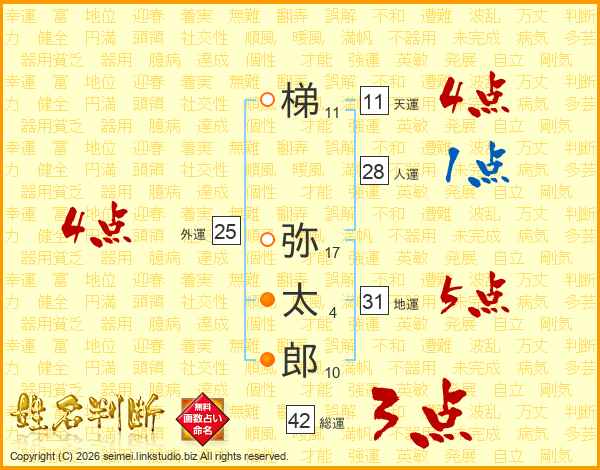 梯弥太郎さんの天運は11画の4点!