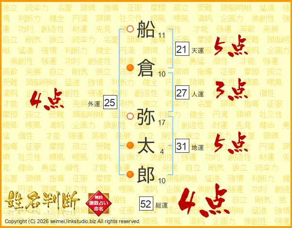 船倉弥太郎さんの総運は52画の4点!
