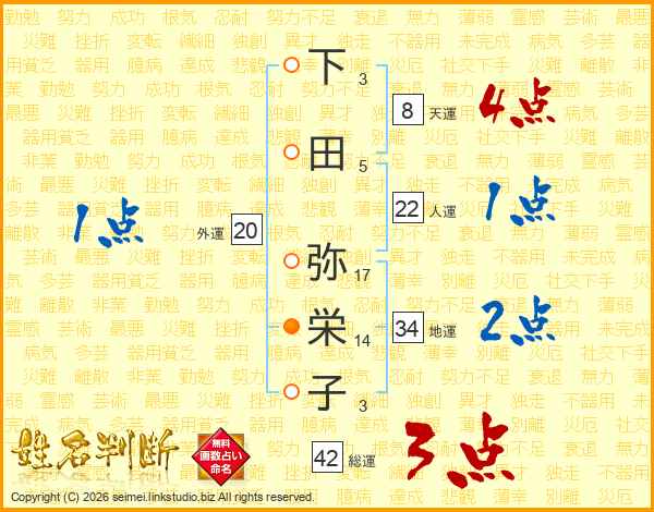 下田弥栄子さんの総運は42画の3点!