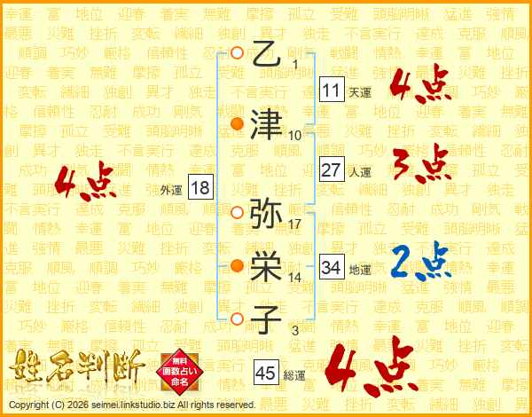 乙津弥栄子さんの外運は18画の4点!