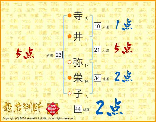 寺井弥栄子さんの外運は23画の5点!