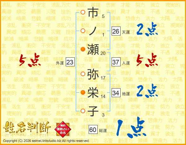 市ノ瀬弥栄子さんの人運は37画の5点!