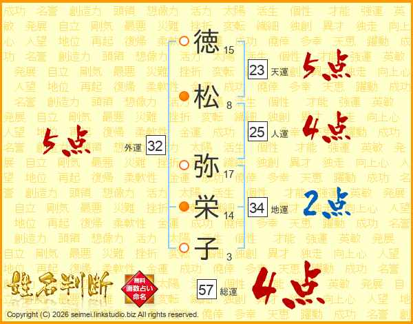 徳松弥栄子さんの総運は57画の4点!