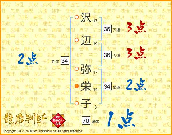沢辺弥栄子さんの外運は34画の2点!