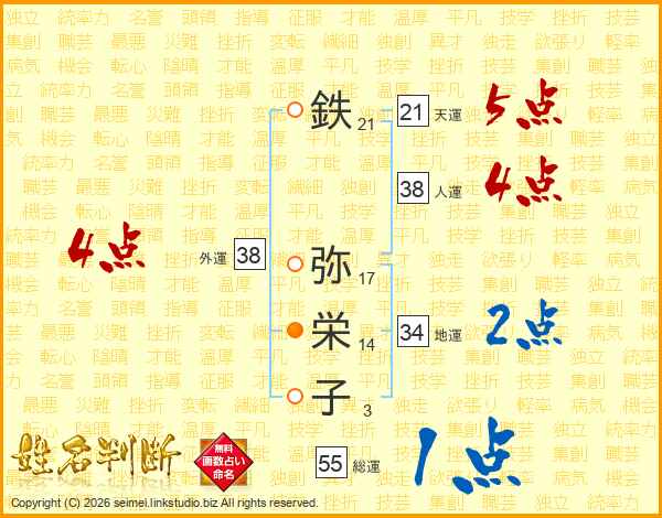 鉄弥栄子さんの総運は55画の1点!