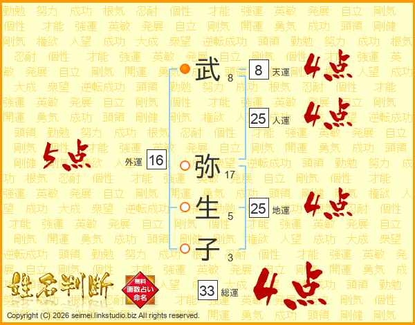 武(8画) 弥(17画)生(5画)子(3画)