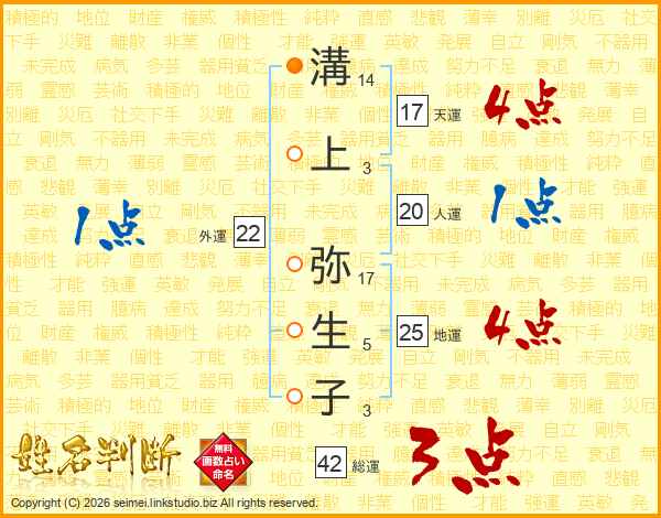 溝上弥生子さんの総運は42画の3点!