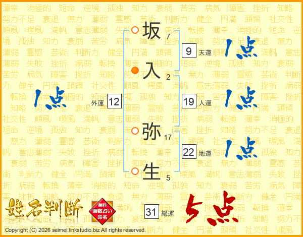 坂入弥生さんの総運は31画の5点!