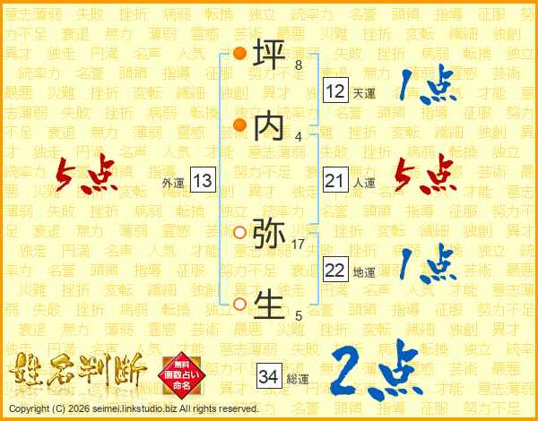 坪内弥生さんの人運は21画の5点!