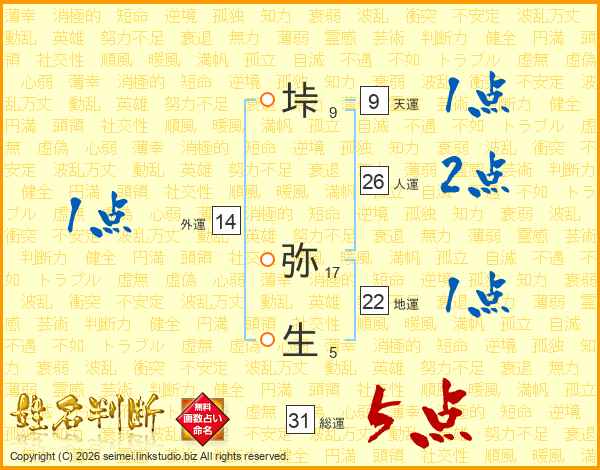 垰弥生さんの外運は14画の1点!