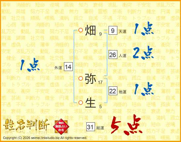 畑弥生さんの人運は26画の2点!