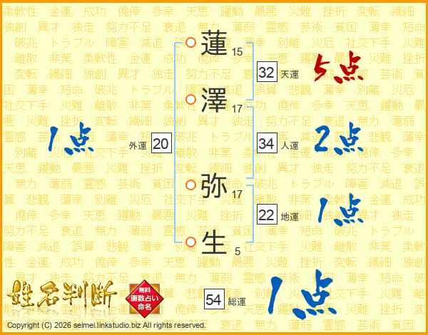 蓮澤弥生さんの総運は54画の1点!