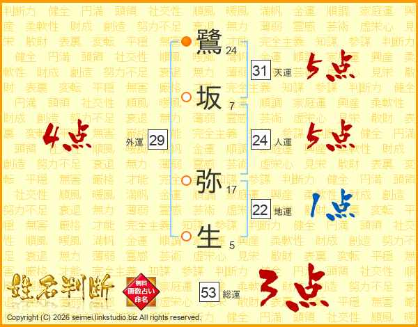 鷺坂弥生さんの天運は31画の5点!