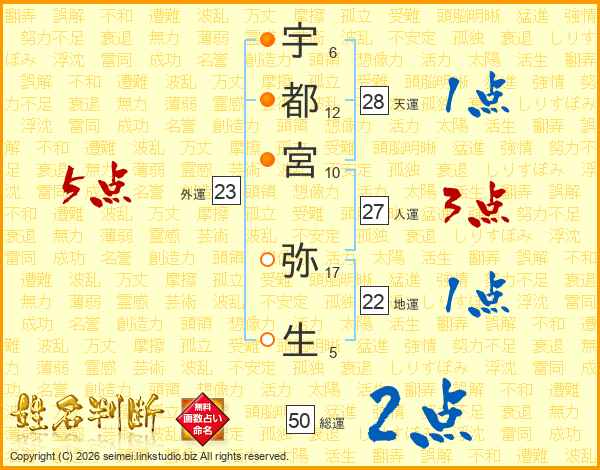 宇都宮弥生さんの総運は50画の2点!