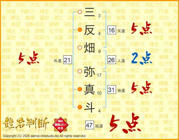三(3画)反(4画)畑(9画) 弥(17画)真(10画)斗(4画)