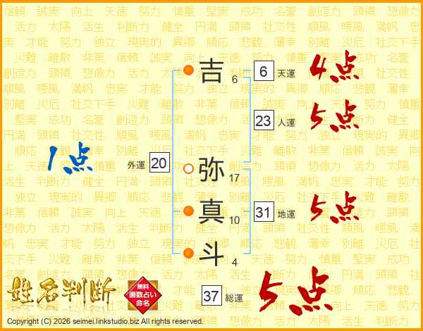 吉(6画) 弥(17画)真(10画)斗(4画)