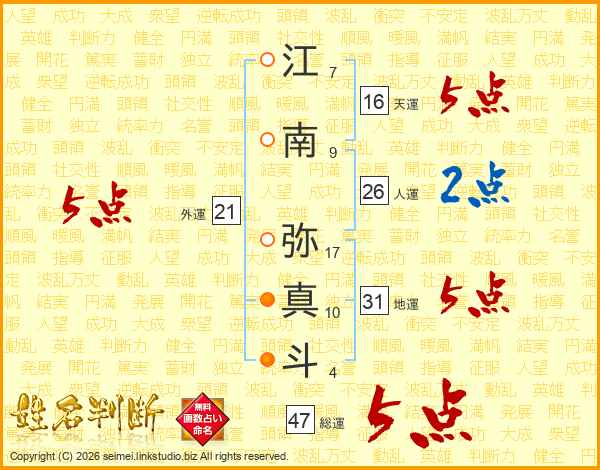 江南弥真斗さんの外運は21画の5点!