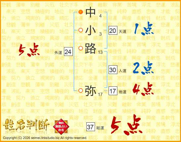 中小路弥さんの総運は37画の5点!