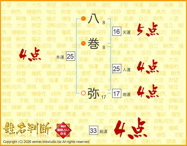 八巻弥さんの総運は33画の4点!